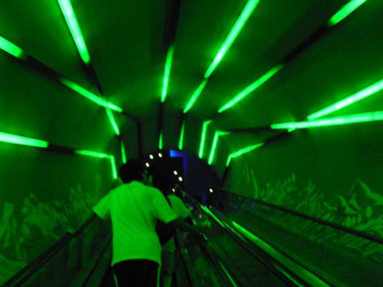 从日本馆出来,已是下午了。我们吃了点东西,休息了一会儿就决定去西班牙馆。一小时排队后,首先是一场循环的电影加舞蹈表演。影片展示了西班牙的各种文化,包括斗牛士等,还有我喜欢的NBA球星加索尔身穿国家队队服运球的镜头。影片临近结束时,一位西班牙女郎从幕前站起,开始一段精彩的斗牛舞表演。进入第二个展厅,我们见到了鼎鼎大名的小米宝宝。他是个十几米高的巨婴,笑盈盈的坐在那里,不住的眨着眼睛,变换着不同的表情,非常的可爱。他的一只脚比一个成年人还高,脚纹都很清晰。我们站在小米身前跟他合影。接着,我们又去了比利时馆,里面介绍的是欧盟的一些情况。晚上,又去了国家电网馆。进入“魔方”以后,发现展厅六个面都是屏幕。我们欣赏了一场无比震撼的真正的全景电影……