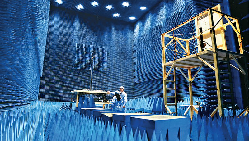 中国科学院微小卫星创新研究院成功打造了卫星批量化生产新模式。按照这一模式,可以像生产汽车一样生产卫星。图为2024年4月18日,在微小卫星创新研究院的微波暗室,科研人员进行批量化生产的卫星单机测试。 新华社记者 张建松/摄