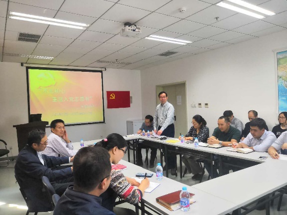田杰同志接着发言,他讲述了自己申请入党的时代背景:东欧剧变、苏联解体,在国内资产阶级自由化思潮泛滥之时党力挽狂澜……,他谈到,只有中国共产党能够救中国,中国共产党的领导是历史的选择、人民的选择,共产主义只有与中国的实际相结合才能解决中国的现实问题,才能更好地发展中国;从历史的经验教训看,坚持“四个自信”对于保持正确的方向尤为重要。接着他谈及入党初心: “共产党员的光荣与责任和奉献紧密联系在一起。加入中国共产党,把党的领导作为人生中的灯塔,指引我一生更好地为人民服务,为共产主义事业而奋斗。”