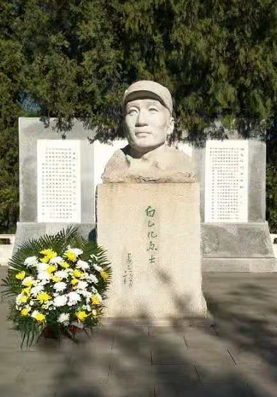 支部向白乙化烈士纪念碑敬献花篮