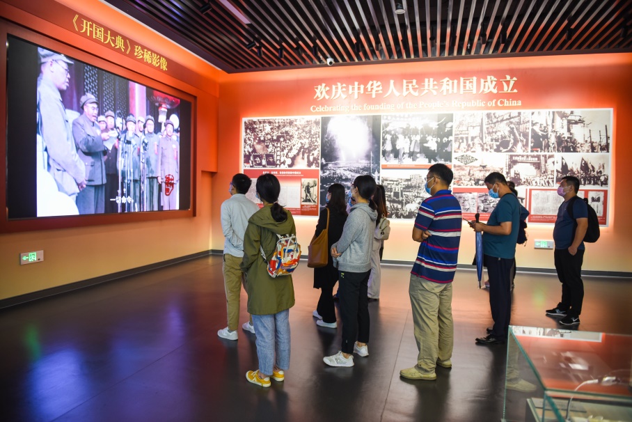 纪念馆内设有《为新中国奠基——中共中央在香山》大型主题陈列展,全面展示了中共中央进驻香山时期波澜壮阔的革命历史。党员们自由参观了展览五大部分,其中“进京‘赶考’”“进驻香山”“继续指挥解放全中国”“新中国筹建”等部分回顾并展出了以毛泽东同志为核心的第一代领导集体,在领导中国人民解放战争走向全国性胜利、建立新中国这一重要历史时期的关键事件及珍贵资料;“不忘初心牢记使命 永远奋斗”部分记述了新一代共产党人沿着先辈足迹,为实现中华民族伟大复兴而奋斗的历史进程。