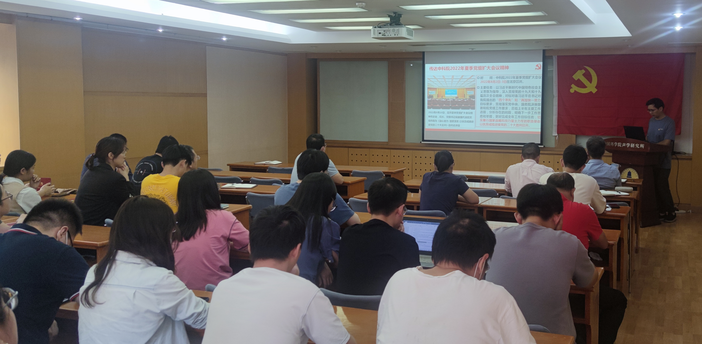 2022年9月29日下午,噪声与音频声学党总支在德昭南楼218会议室组织召开了全体党员大会,共44位党员参会。所纪委委员、党总支书记白国锋主持会议。