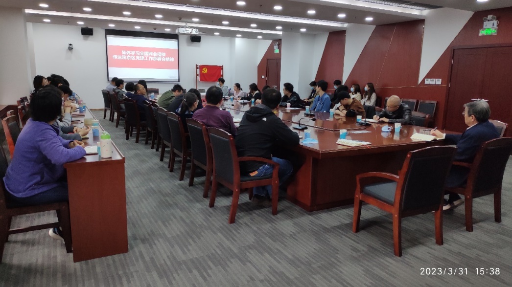 2023年3月31日下午,超声学党总支第一党支部在科研综合楼1501会议室召开党员大会暨主题党日学习活动,集体学习全国“两会”精神,传达院京区党建工作部署会精神。党总支副书记、第一党支部组织委员苏畅主持会议,支部39名党员参加会议。
