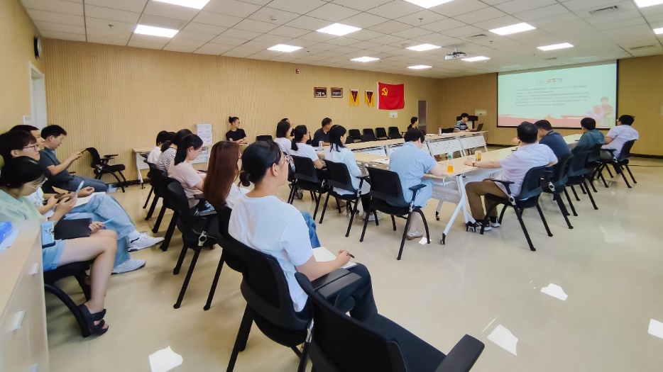 陈乃宾作了题为《纪念八一建军节》的微党课汇报,从南昌的枪声到八一建军节的建立,梳理了中国人民解放军铸就钢铁长城的历程。