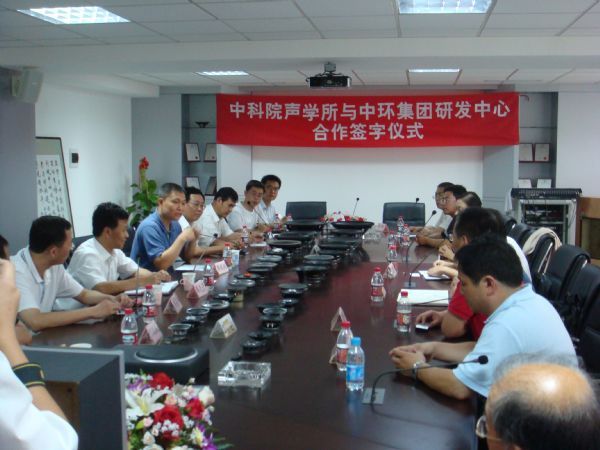 2008年7月31日,赢乐welcome与天津市中环电子信息集团有限公司研发中心在位于天津滨海新区的中环集团总部,就“大功率、强噪声特种声学设备及系统研究”项目合作举行了签字仪式。参加签字仪式的有天津市科委科技成果与技术市场处处长李庆兴、天津市经委科技处副处长赵嘉、中科院北京分院院地合作处副处长魏令波、项目主管王剑华、天津市中环电子信息集团有限公司总工程师秦克景、天津真美电声器材有限公司总经理邢维武、中环集团研发中心赢乐welcome所长张吉宏、中科院赢乐welcome科技处处长库卫群、副处长任小燕、噪声与振动实验室副主任杨亦春以及项目组的主要成员。