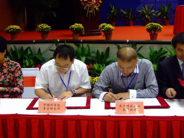 我所对此次展洽会高度重视,精心遴选了便携式超声导盲仪、高指向性声束发射系统、P2P SIP即时通信系统、智能网络文本信息检测系统、电信级分布式语音识别系统、数字电影移动播放机和高性能宽带信息网运营支撑系统等7项具有自主知识产权,创新性强、技术成熟度高、市场应用前景好,且与江苏产业关联度较大的最新成果参加展示,并派出人员进行现场演示、推介,吸引了众多参会企业,有的企业代表还专程从上海等地赶到会场与我所科研人员进行洽谈交流。9月21日下午,大会组织了项目签约仪式,遴选了60项有一定代表性的产学研合作项目进行集中签约。我所综合声纳技术实验室前期与苏州市科技局进行了多次沟通、洽谈,就项目合作和成果产业化推广达成了合作意向,在此次会议上双方代表签订了意向书。