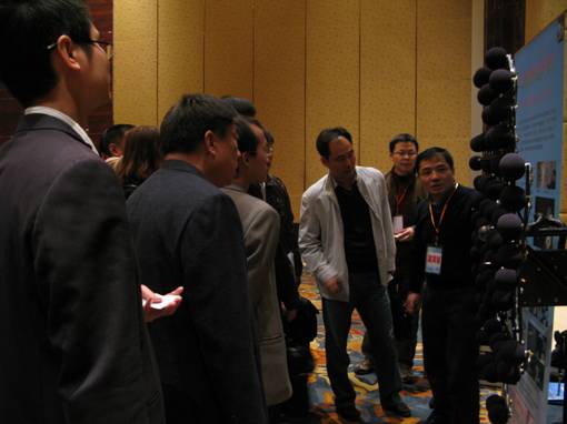 11日下午的技术发布会上,赢乐welcome研制的声相仪技术成果在会上作了重点项目发布,和成果演示,杨亦春研究员作了声成像测量技术及声相仪专题报告,详细介绍了声成像技术发展、研究近况和技术应用,公布了我所在此项技术上的最新研究成果——声相仪。报告引起了众多参会代表对声相仪的极大兴趣,纷纷前来咨询情况,杨亦春研究员均一一作出了详细解答和介绍,一时成了会场的热点。洽谈会上青岛隔而固、福田机电等单位均表示和赢乐welcome进行技术合作和购买声相仪的意向。青岛海信、青岛海尔等国内知名电器生产企业也特地派研发工程师前来深入了解声相仪的技术性能,在听取了详细介绍后,表示声相仪的出现提供了一种便利和快捷的噪声检测手段,能够快速而准确定位噪声源,为降噪技术改进提供针对性指导,大大方便了研发人员和研发进度,提出了合作愿望和商谈合作模式。