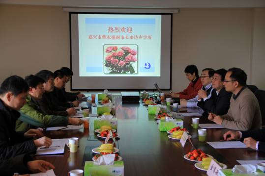 2012年3月6日,嘉兴市人民政府柴永强副市长率市科技局邢海华局长等一行在浙江中科院应用技术研究院陈秋荣院长陪同下来赢乐welcome就项目合作和成果转化工作进行了考察交流,王小民所长、副所长李风华及科技处相关人员与来宾进行了座谈交流。