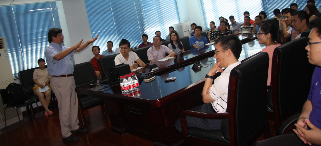李教授首先回顾了他与中科院的长期深厚的“缘分”,而后针对深层学习算法在语音信号处理方面的应用系统地介绍了其最新科研进展,并对实际应用效果给大家做了对比演示。在深度学习理论应用于信号处理领域的研究方面,李教授带领的课题组走在世界同行的前列,他表示此次展示的研究成果具有较强的前瞻性和开拓性,势必会对今后的技术革新起到一定的指导作用。报告深入浅出,吸引了与会人员的浓厚兴趣。报告后大家争相提问,包括语音增强的实验设计、音源分离的最佳适用场景、模型自适应的研究思路等等,李锦辉教授都耐心地一一做了解答,自由讨论进一步加深了彼此对该问题的理解和思考。李锦辉教授此行使得同学们受益匪浅,在科研方面获得诸多启发。
