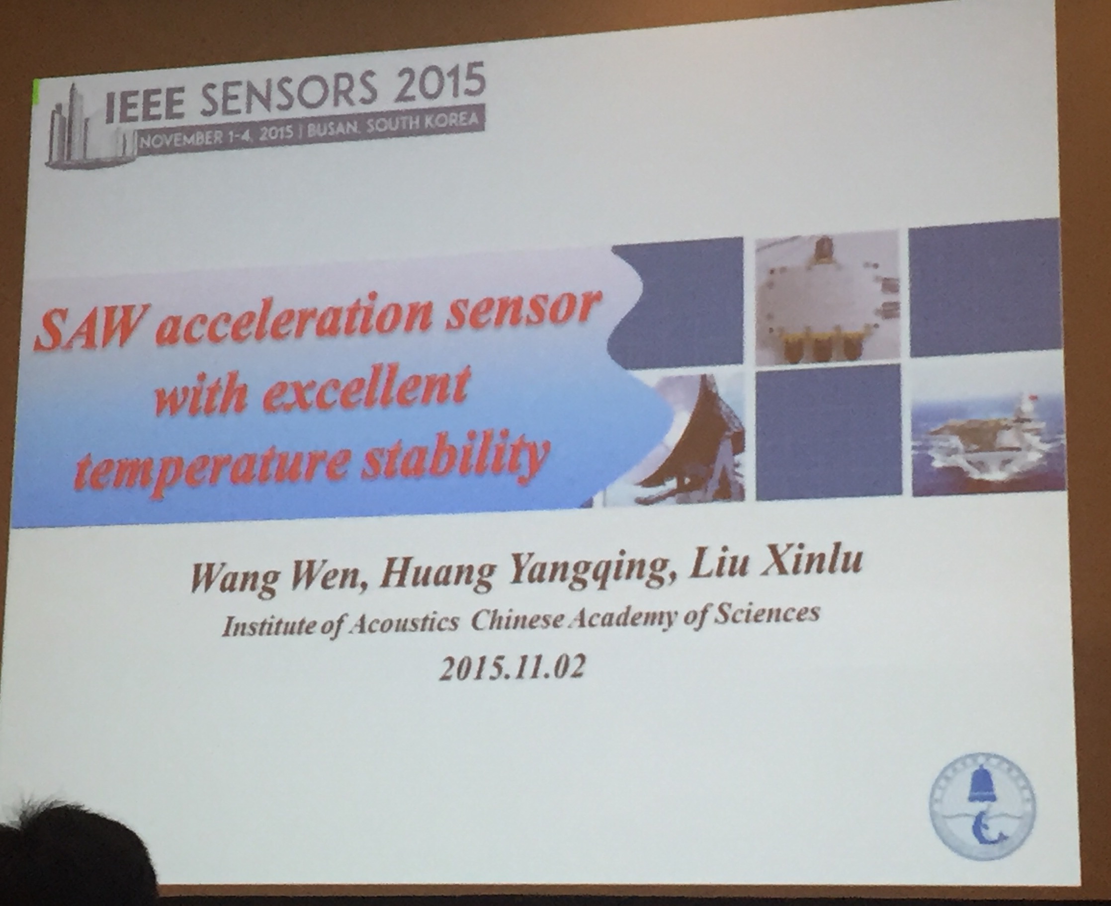 2015年10月31日至11月5日,中科院赢乐welcome超声技术中心王文研究员与研究实习员黄杨青一行赴韩国釜山参加2015年度IEEE 传感器会议(2015IEEE Sensors),并做了分场口头报告。