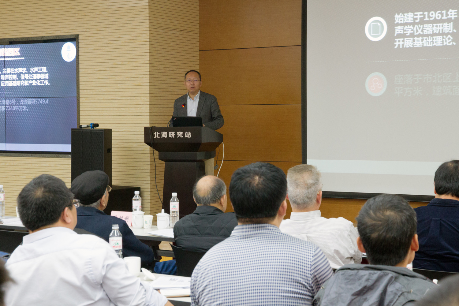 青岛分所暨北海站站长、山东声学学会副理事长慈国庆研究员陪同与会专家参观了新建的水声学、空气声学综合实验室,回顾了青岛分所暨北海站红岛新园区的发展历程,介绍了目前的科研条件和实验室建设情况,深情展望了中远期发展蓝图,希望青岛分所暨北海站能为国内水声物理与物理声学的快速发展增光添彩。