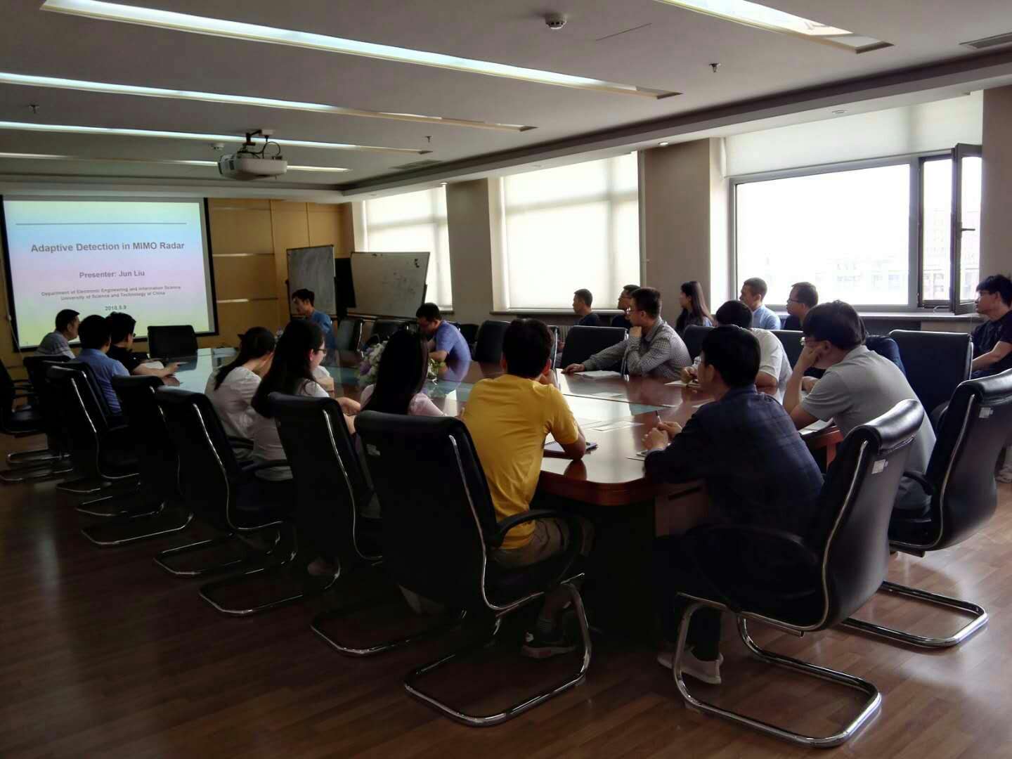 报告结束后,与会师生与刘军副教授就雷达自适应检测中的理论及应用问题展开了热烈的讨论。郝程鹏研究员及水下航行器信息技术实验室“信号处理”方向组成员等进行了座谈会,双方就科研合作进行了深入细致的讨论。