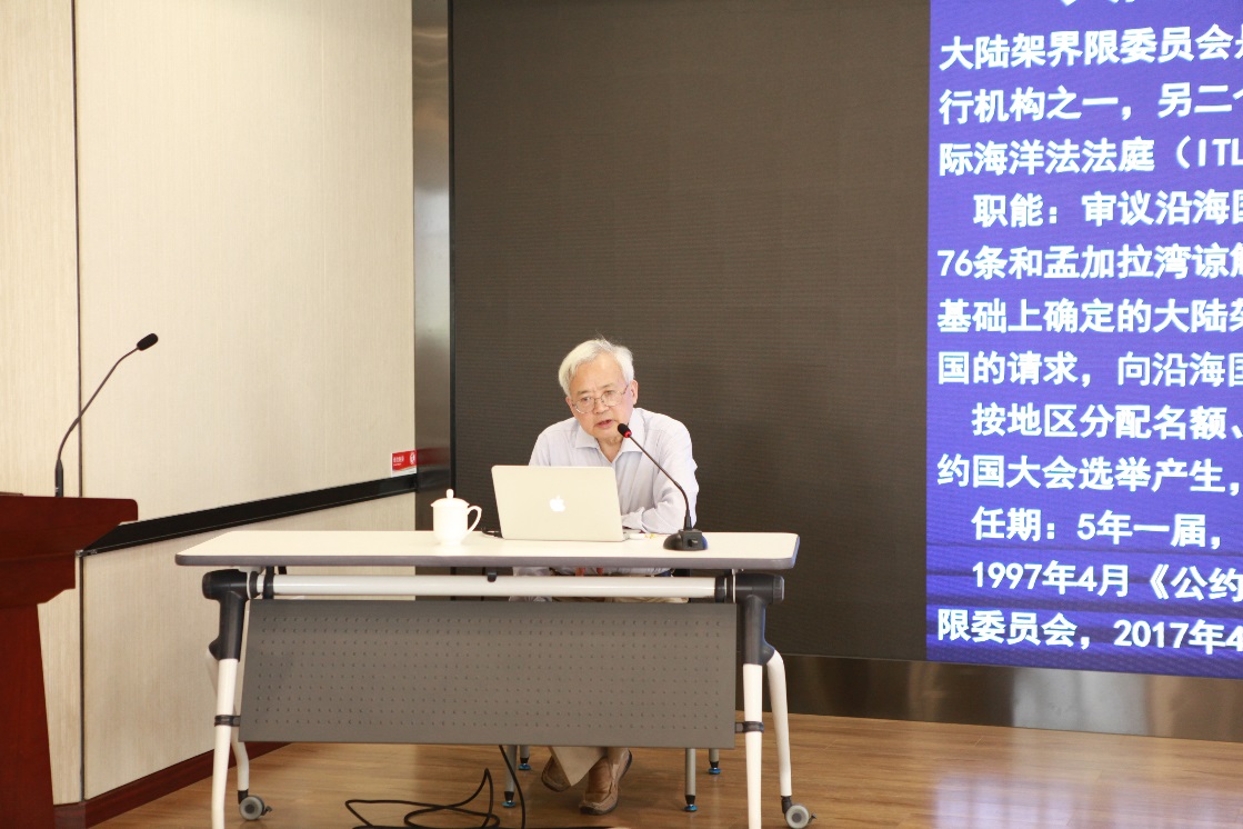 吕文正教授从在大陆架界限委员会21年来的工作经历出发,深入浅出地讲述了大陆架委员会的历史来源与组成结构,分享了如何在国际舞台上发出正确主张、坚守原则的经验。最后,从工作负担、争端划界案的处理、复杂划界案的审议等几个方面介绍了委员会目前面临的挑战。
