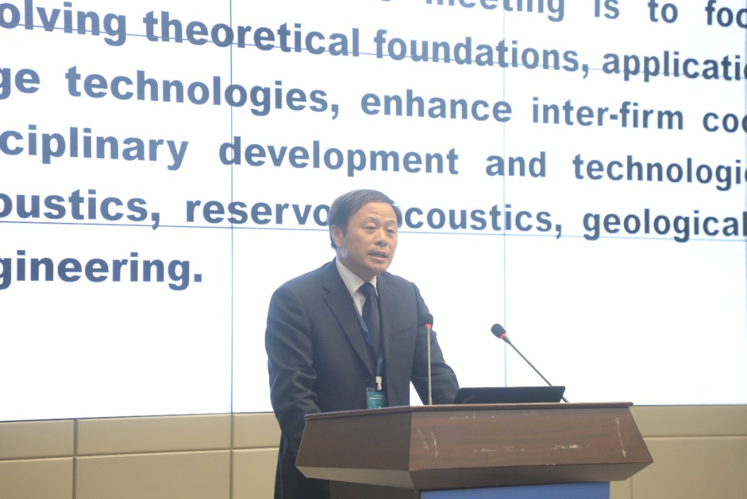 中国地球物理学会秘书长郭建研究员代表主办方中国地球物理学会致辞,他介绍了中国地球物理学会的发展以及目前的现状,然后介绍了井孔地球物理学专业委员会的情况,结合本次会议的报告内容,他还在促进井孔地球物理专业委员会快速发展方面给出了重要指导意见。