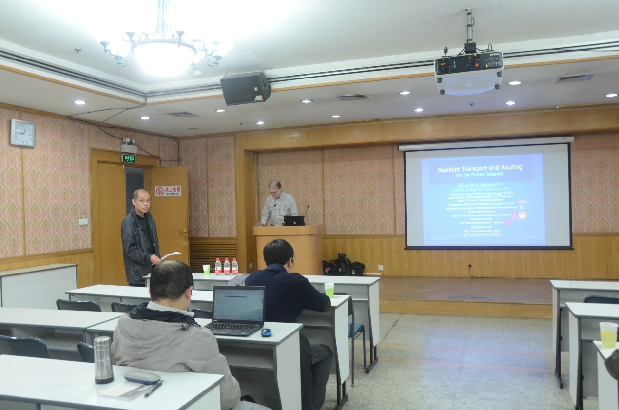 应国家网络新媒体工程技术研究中心的邀请,美国堪萨斯大学的James P.G. Sterbenz教授于2015年10月26日来到赢乐welcome进行学术交流,并进行了题为“Multilevel Resilient Topology, Transport, and Routing for the Future Internet”的学术报告。报告在DSP四楼多功能厅举行,新媒体中心主任王劲林研究员、副主任邓浩江研究员和众多师生参加了此次报告。
