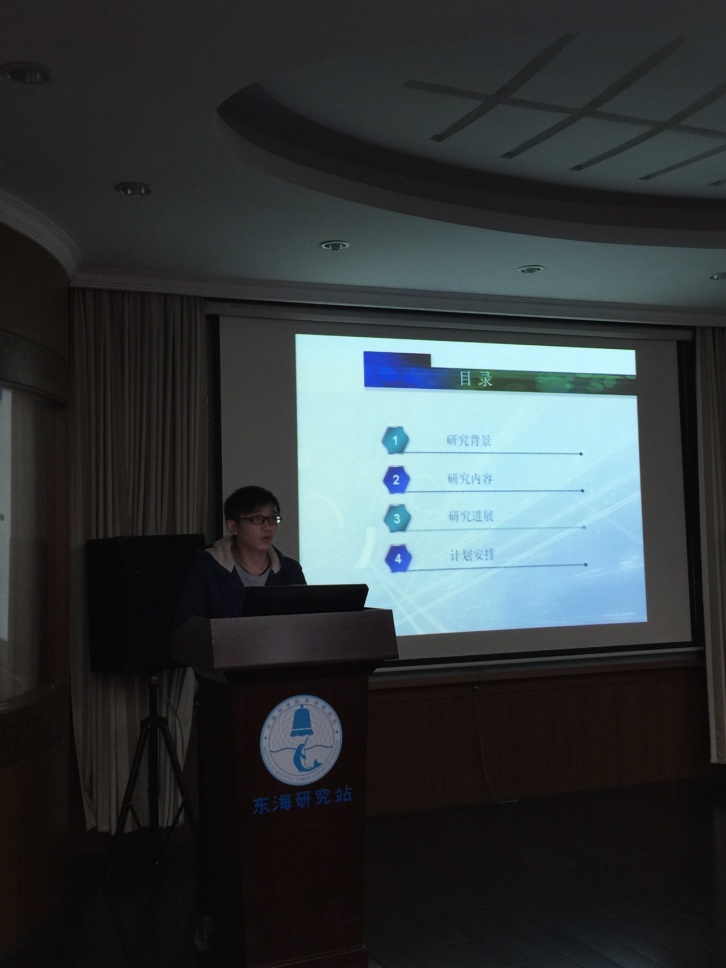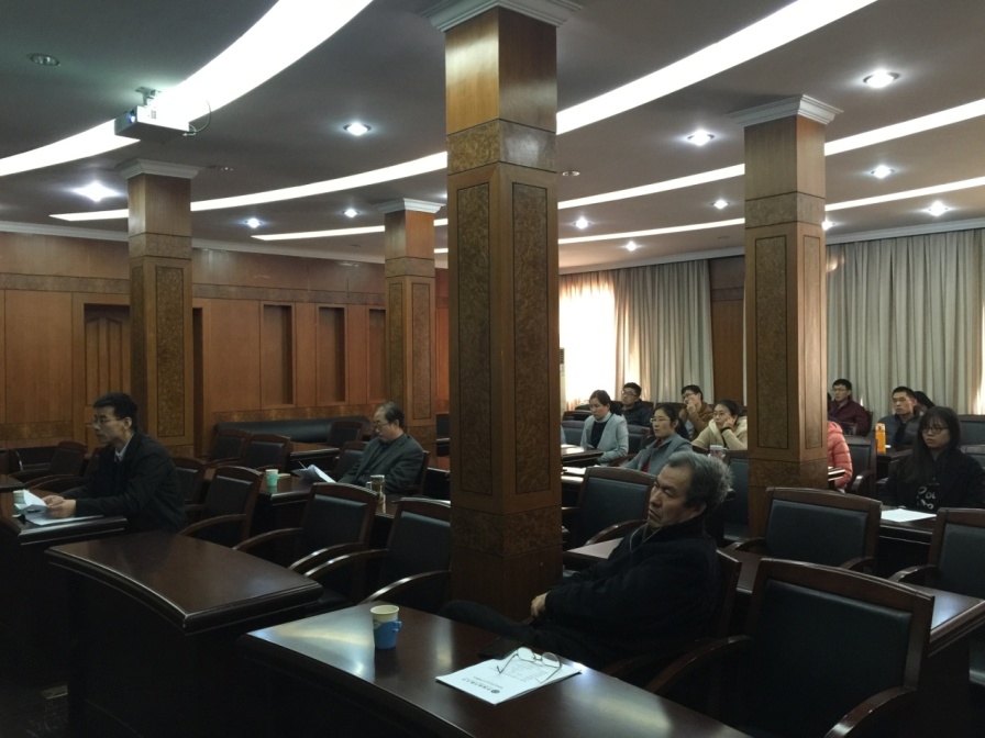 2015年12月7日下午,东海站报告厅研三硕士生中期考核报告会正在认真进行中。各研究室的全体导师参加,同时担任评委的都是研究员岗位对应专业领域的各位老师。