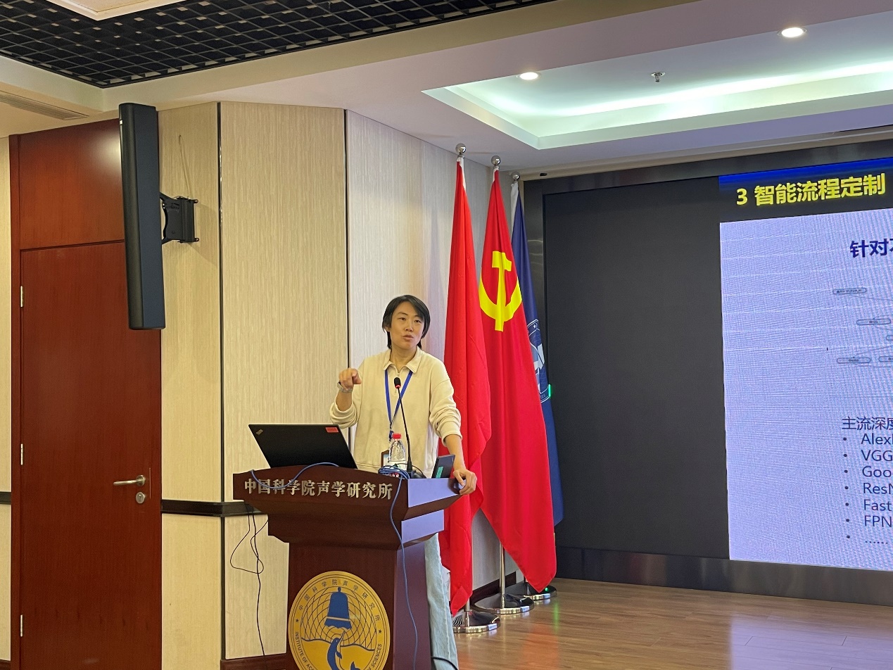 王新伟作《微弱光环境下远距离海洋光学成像及定位技术》的报告。报告从光在水介质中传播的局限性出发,分别从消除光散射和利用光散射两种思路,阐释了透过散射介质的二维/三维光成像技术和水下矢量光视觉导引技术,并介绍了目前在水下平台应用的一些案例。报告最后展望了光学领域和声学领域在水下探测应用技术中交叉融合的发展前景,希望能与声学开展更为深入的交流合作。