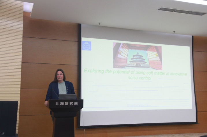 Leif Kari教授作题为Exploring the potential of using soft matter in innovative noise control的报告,报告介绍了一种具有化学和物理双交叉耦合的软质水凝胶,讨论了其化学和物理模型,并指出由于其强烈的粘附-脱粘物理交叉耦合活动,导致其具有显著的振动衰减和基础振动系统中平滑的频率特性。该水凝胶在动力吸振系统和隔振的应用中有明显的抑制振动效果,且多参数模型和实验结果吻合良好,该类材料具有良好的减振降噪应用潜力。