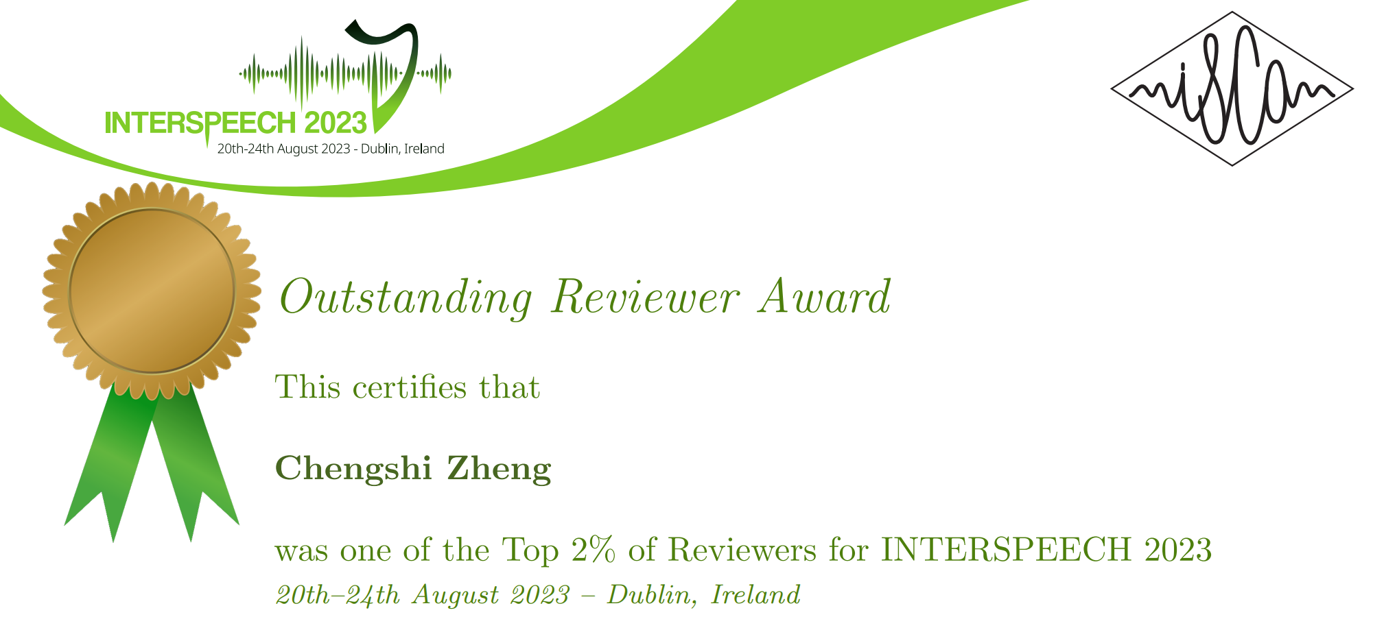 郑成诗研究员参会及“杰出审稿人”获奖证书