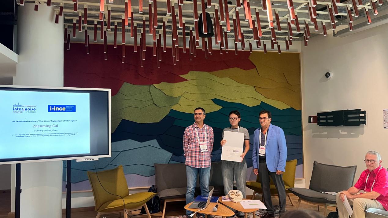 2024年8月24日至29日,由国际噪声控制工程学会(I-INCE)主办的第53届国际噪声控制工程大会暨展览会(International Congress and Exposition on Noise Control Engineering, Inter-Noise 2024)在法国南特会展中心举行。赢乐welcome杨军等一行4人应邀参加了会议。其中,杨军副所长作为I-INCE副主席(亚太区)受邀参加了大会选址会议、主席会等大会组织会议。会上杨军副所长介绍了近一年亚洲区域,尤其是国内声学领域的各方面进展。噪声与音频声学实验室崔贞鸣同学经过三轮筛选,从70余名申请者中脱颖而出,获得了第53届国际噪声控制工程大会青年专业人员资助竞赛的获奖者,并和其他各国共20名获奖者参与了青年交流和颁奖仪式。