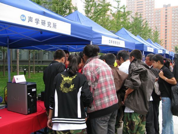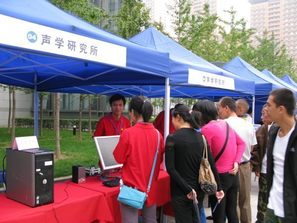 “声音定向传播系统”的高指向性扬声器,就如同武侠小说里的传音入密,声音只在特定的范围内传播,具有极好的保密性和私密性。小孩子是最有好奇心和求知欲的,而且也是最具领悟力的。在现场演示中,很多小孩子一下子就明白了,这样的高指向性扬声器就如同电筒光一样,把声音约束在一个特定的区域里。面对小朋友纯真的眼神,科研人员耐心地用尽量简单的解释让他们明白科学的奥秘。在演示过程中,参观者对这类高指向性扬声器兴趣浓厚,并切身体验虚拟声的形成。科研人员把展板放在高指向性扬声器前面,声音碰到展板会反射,人们站在展板侧面会明显感觉声音很大。很多人就感觉声音是从展板出来的,虚拟声源就形成了,在房间里放这样的一个扬声器,只要有反射体就能形成立体声的感觉了,大家都感觉很神奇。很多参展观众对这种扬声器的商业应用特别关注,咨询国内有没有类似的产品,认为这种高指向性扬声器会有很大的市场前景。高指向性扬声器的一些商业应用,首先是满足个人的聆听享受,还可以用在展厅里、ATM机上。大家都希望能早日把这样的高指向性扬声器应用在实际生活中。