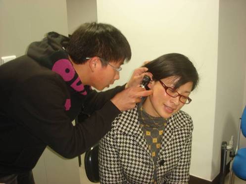 听力专家张博士为市民检查耳道