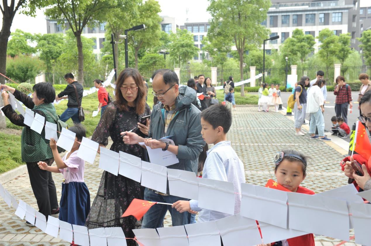 活动在庄严肃穆的升旗仪式中拉开帷幕。朱桥小学升旗队护卫着国旗,迈着整齐的步伐走向观众,伴随着雄壮的国歌,五星红旗缓缓升起。礼毕,全场人员在东海站志愿者的带领下,一同唱响“我和我的祖国”,小朋友们挥舞着国旗,伴随着悠扬的歌声,点燃了在场的每一位参与者的热情。