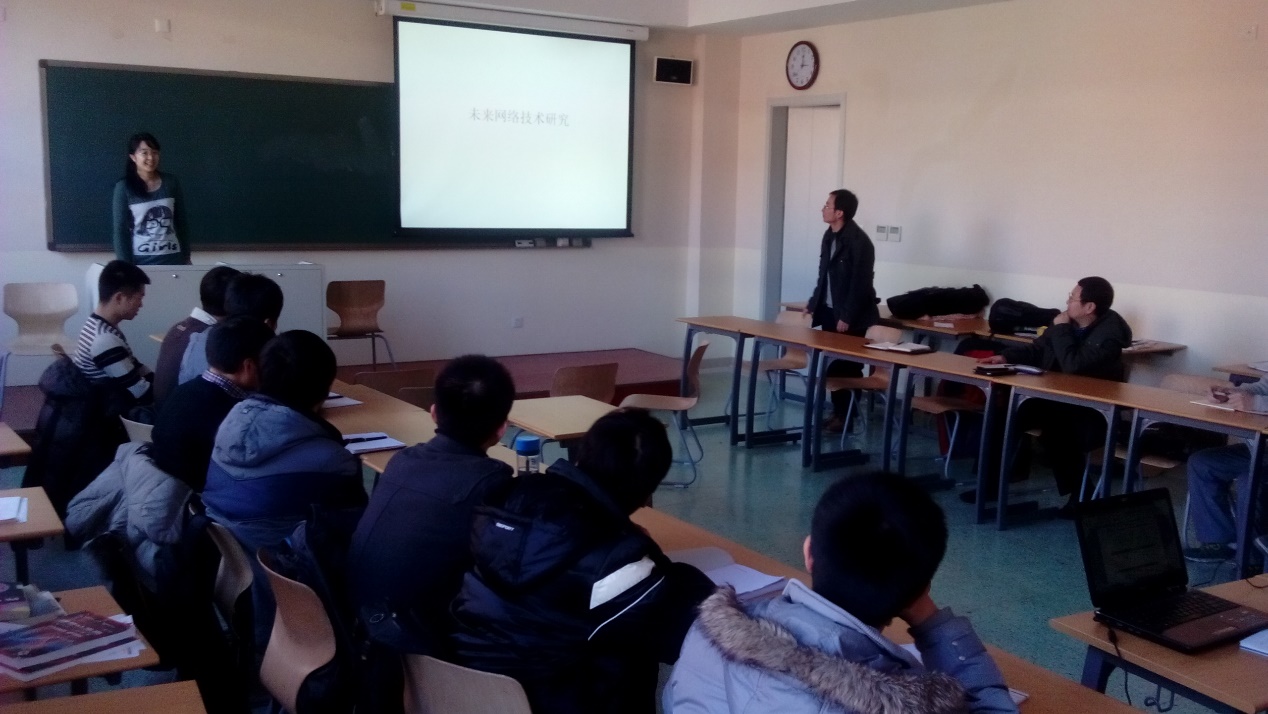 2014年1月9日,网络新媒体工程技术研究中心王玲芳、尤佳莉、杨中臻老师以及中心团支部樊皓,来到在中科院大学雁栖湖校区,慰问网络新媒体2013级新生,针对“中科智网杯”网络新媒体创新能力挑战赛进行宣讲,并正式启动了第四届的“中科智网杯”创新能力挑战赛。网络新媒体十四名新生参加了会议,会议由尤佳莉主持。