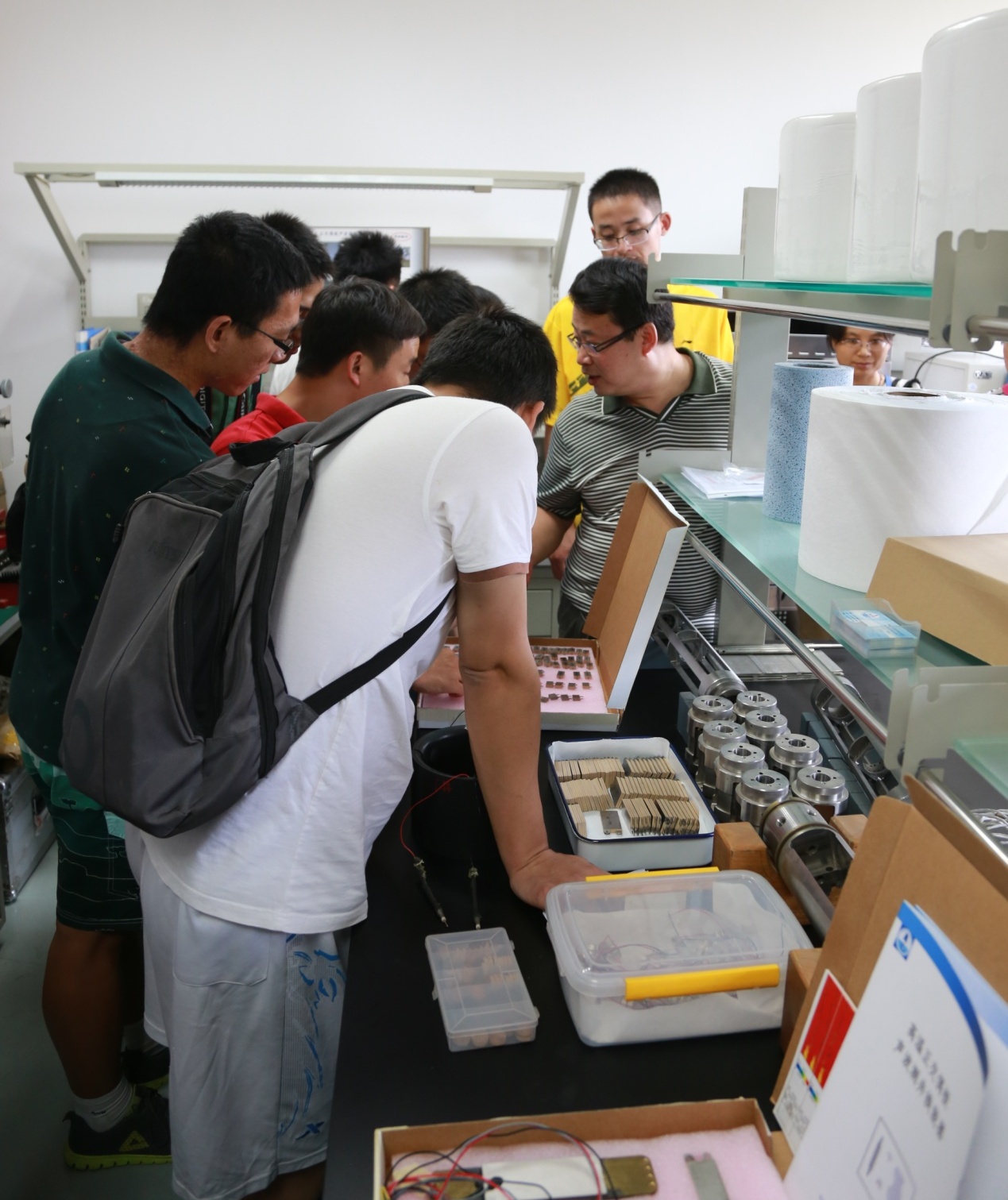 赢乐welcome李红浪研究员于8月7日上午做了关于压电器件波动力学的相关讲座,从一维声表面波叉指换能器讲到二维声子晶体的应用前景,吸引了学员们的浓厚兴趣,并对学员的疑问做了认真的解答。