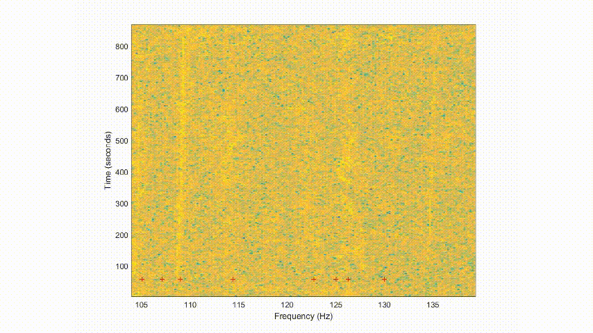 基于时-频二维特征的人工目标线谱实时追踪结果(图/李超)