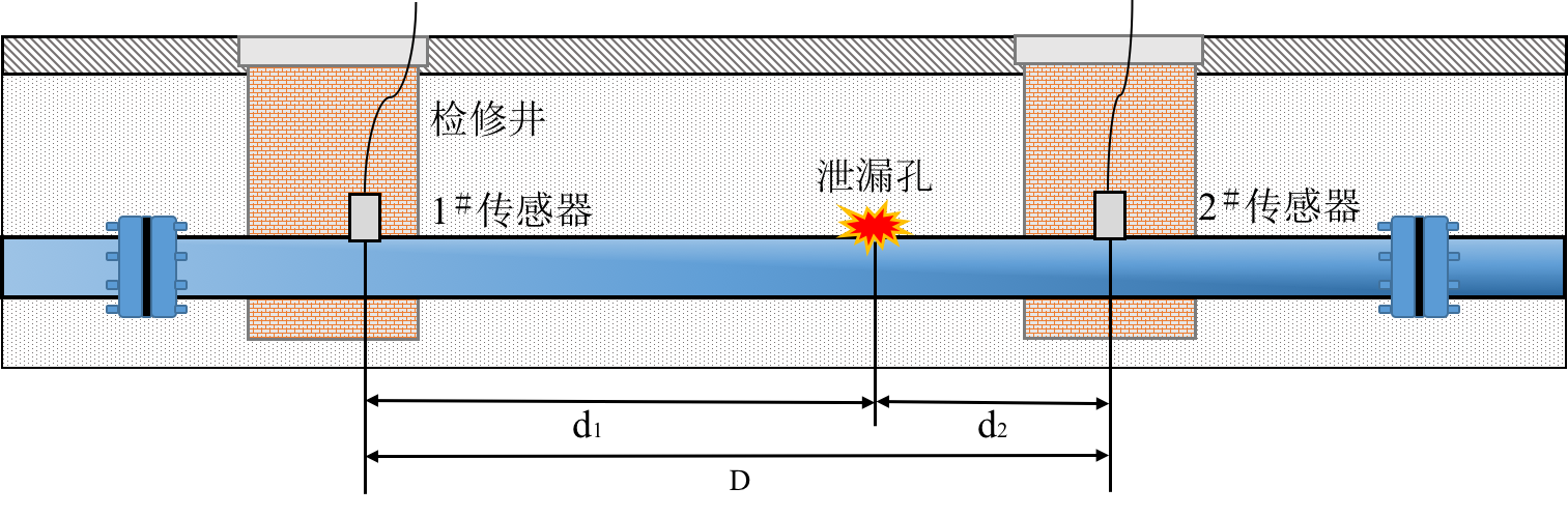 在城市供水管网中,管道老化、自然灾害和建筑施工破坏等原因频频引发管道泄漏等事故。目前,在埋地供水管道泄漏检测中,基于泄漏声信号的相关检漏法应用最为普遍。相关检漏仪虽然检测速度快、成本低、鲁棒性强,但是受管材限制,塑料管道的最大测距仅为百米;另外针对渗漏检测时,声信号较弱,探测灵敏度和距离都受限制。