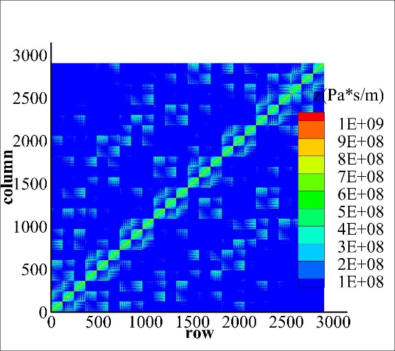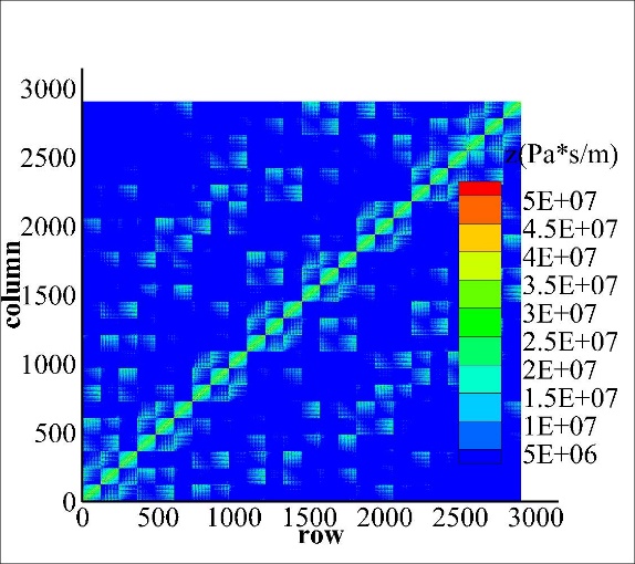 图1 弹性球壳的全局声阻抗幅值矩阵:(a):100Hz;(b):2000Hz(图/中科院赢乐welcome)