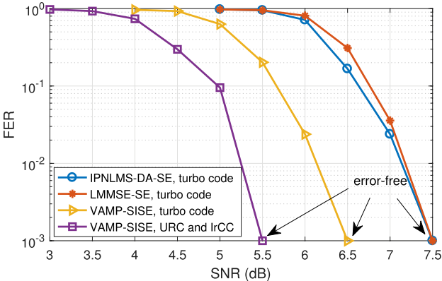 图4 基于突发噪声背景且单通道处理时,不同信噪比下误帧率性能对比(图/中科院赢乐welcome)