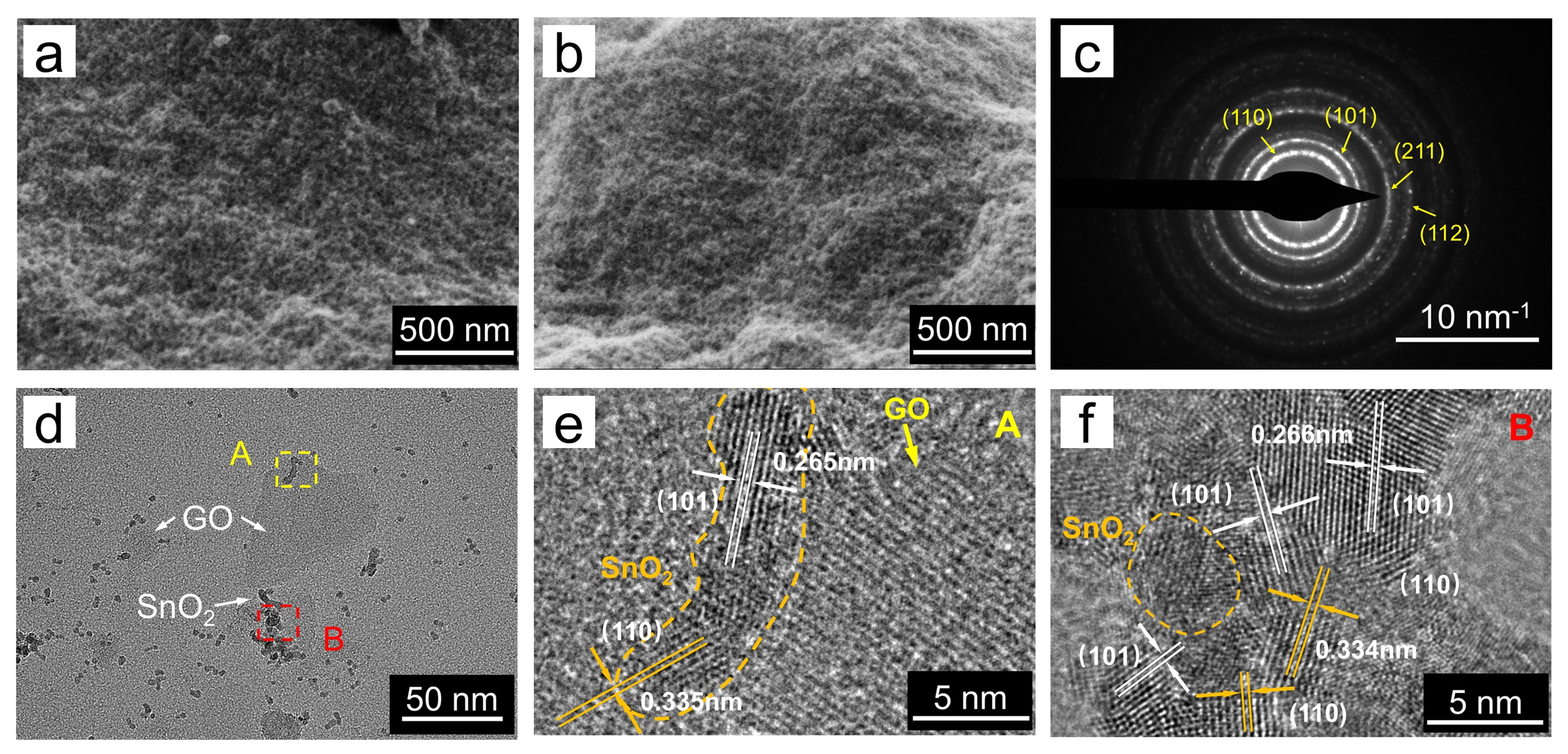 图1 氧化石墨烯-氧化锡纳米复合材料的表征(图/中科院赢乐welcome)