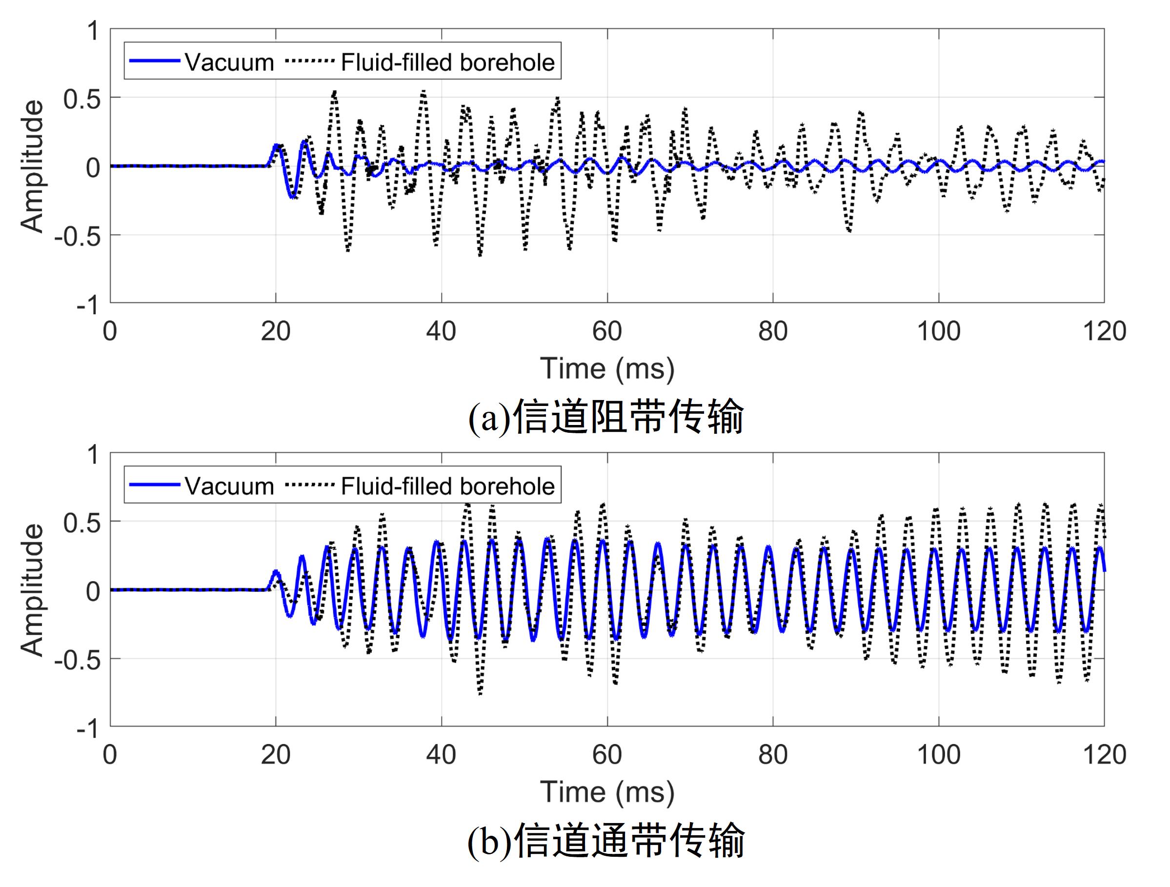 研究表明,相比于自由钻柱场景,充液井孔环境会导致钻柱声信道的通阻带分布发生根本性变化。钻柱声信道在时域上的多径时延反映到频域上则呈现出大尺度的频率选择性衰落,一方面表现为离散带隙的幅频特性,另一方面则是非线性失真的相频特性。而从传播机理上看,钻柱声信道的多径效应不仅是指载波信号沿多路径延迟到达,还包含不同速度载波分量的耦合传输,这是由固-液分层波导的声学性质所决定的。本研究有助于推动钻柱导波通讯从理论走向实际应用。
