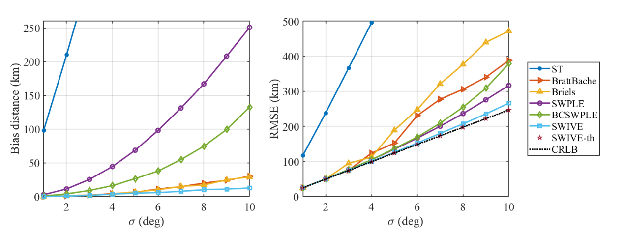 为解决SWPLE算法存在的偏差问题,研究人员进一步提出了基于工具变量法的球面加权工具变量估计器 (spherical weighted instrumental variable estimator, SWIVE)。通过理论分析得到SWIVE算法具有渐近无偏性和渐近有效性,数值仿真证明了这一结论。该技术可为基于广域监测网的次声源定位需求及任务提供更加稳定快速的解决方案。