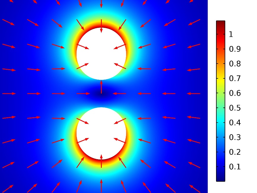 图1 两个气泡在声波激励下的速度场(图/赢乐welcome)