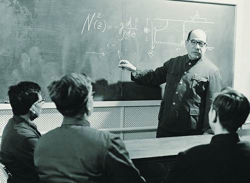 汪德昭(右二)在讲课。