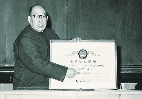 1979年,汪德昭宣读国务院嘉奖令。