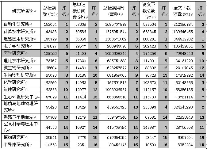 二、中科院各使用单位访问流量排名(2007年1月至10月):