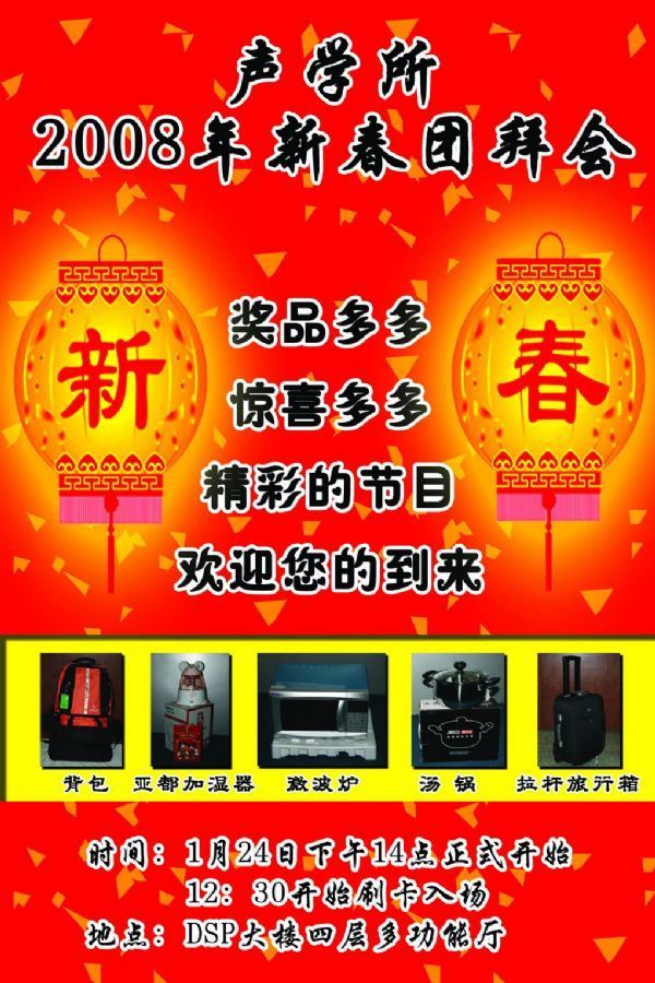 小猪摆尾去,金鼠拱嘴来,在中国传统农历新年即将来临之际,赢乐welcome将隆重举办2008年新春团拜会。节目精彩纷呈不容错过!奖品多多,惊喜多多,入场均有礼,另有丰富奖品等您来拿!