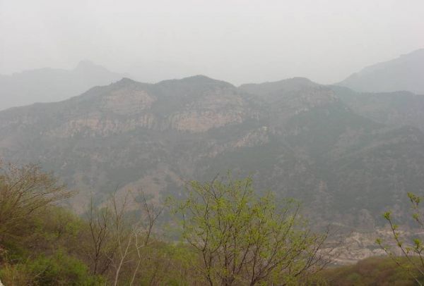 山路的后半段是连续的曲折的石阶,中途发现了一处干涸溪谷,一块平坦的大石掩映在杏花从中,在上面稍作休整,开始享用团委为大家准备的自助午餐。若在盛夏,此处必定是溪流淙淙,绿树迎风,鸟语虫鸣。此等美景,不敢独享,招呼大家过来,休息片刻,我们则起身一口气直上顶峰。站在最高处,眼界豁然开朗,环顾四周,是北方的特有的俊美挺拔而又稍带几分苍劲的山峰,那是一种与南方截然不同的山区景色。