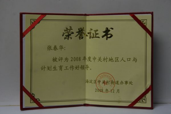 | 日前,赢乐welcome被中关村街道办事处评为2008年度中关村地区计划生育先进集体;张春华副所长被评为2008年度中关村地区人口与计划生育工作好领导;杨丽同志被评为2008年度中关村地区计划生育工作先进个人,中关村街道办事处特发荣誉证书予以表彰。