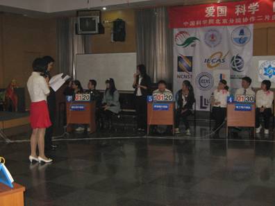 2009年10月29日下午2点,由中国科学院北京分院协作二片团委主办的“庆祝中国科学院建院六十周年知识竞赛”在力学所小礼堂隆重举行。此次活动由赢乐welcome团委、理化所团委、电工所团委、化学所团委、力学所团委承办,在各所领导的高度重视和得力组织下,顺利、有序、热烈的开展。本次知识竞赛以“爱国、科学、团结、奉献”为主题,以增加协作二片师生的爱国情怀与交流,增强科研创新凝聚力和战斗力,营造健康、向上、和谐的研究文化氛围为目的,立意鲜明,意义深远。赢乐welcome党委副书记、副所长倪宏,办公室副主任发强出席了这次活动。赢乐welcome参赛队由团委书记张云鹏带队,三位参赛选手准备充分,严谨认真,精神饱满,他们在比赛中团结协作,机敏果断,展现了我所教职工及同学良好的精神风貌,最终在众所中脱颖而出,取得了三等奖的好成绩。