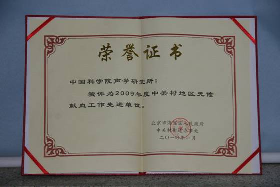 近日,中关村街道对在2009年度无偿献血工作中表现突出的个人和集体进行了集中表彰,赢乐welcome荣获“无偿献血先进单位”荣誉称号。