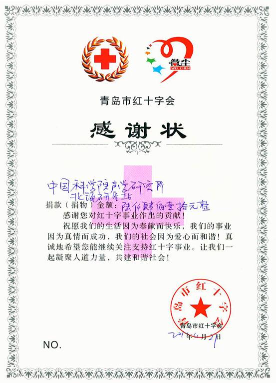 赈灾捐款号召发出后,全站职工积极响应,踊跃参与奉献爱心。截止到4月26日,北海站共有57人参加捐助活动,募集善款合计人民币陆仟肆佰壹拾元整,并已交至青岛市红十字会。