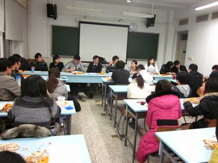 紧接着是研一的同学对师兄师姐们进行提问,大家畅所欲言,师兄师姐们也很热情为大家解答各种问题,会上气氛很是热烈。研一的同学们普遍比较关心进入实验室之后的工作和学习情况,师兄师姐们都很真诚的与我们交流自己的心得和体会,有一位师姐的话给我启发很大,她说在研究生会工作很忙,同时又不能耽误实验室里的学习与工作,这就要提高工作效率。是的,效率!时间是海绵里挤出来的水,真理就蕴含在这些看似简单的话语中。而我们常常在碌碌中忘记了去用心体会和发现很多真理!