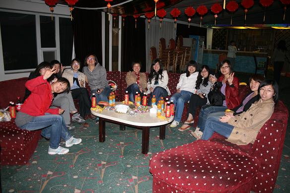 下午舒舒服服泡过温泉,晚饭后是集体联谊会。由于日常工作中,除了几个联系较多的部门,各实验室之间、实验室和各办公室之间的同事们接触的机会不是很多,为了增进彼此的交流,工会和妇委会的领导以及几位热情的同事们特意组织准备了这一联谊活动。活动中有多彩的游戏:击鼓传“花”、夹气球、心有灵犀。心有灵犀虽然是很多人非常熟悉的游戏,但是,题目都是针对女性的性格特点和生活喜好而精心挑选的,包括生活用品、品牌、化妆品日化品等,大家玩起来也格外紧张并快乐着。游戏重在参与,不论胜负,都不缺奖品,而且,所有的奖品在我们的眼中都是非常可爱又实用的。游戏之余,不论老师还是学生,都踊跃上台一展歌喉,有的嗓音高昂嘹亮,有的曲调清纯甜美,有的歌词调皮可爱,也偶有反串声的浑厚和有力。大家唱歌的热情很高,直至夜深了,最后几个离开的女孩儿仍一路快乐地哼唱着。