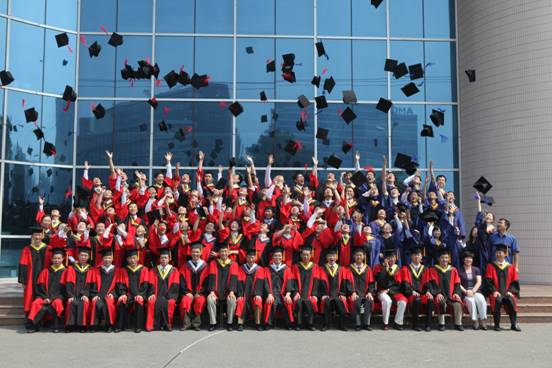 最后一项议程在轻松欢快的音乐声中进行。王小民所长等主席台就座嘉宾向毕业生们颁发了毕业证书并合影留念。