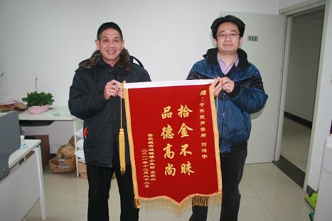 拾金不昧是中华民族的传统美德,也是一个人良好道德风尚和崇高社会责任感的具体体现。前段时间,海洋声学技术实验室的刘治宇同志在居住的小区里捡到一个钱包,发现其中有数百元现金,还有2个身份证以及其它的证件、银行卡,为了尽快找到失主,减轻失主丢失钱包的焦虑和补办证件的周折,他立刻在小区中的多个地点贴出了告示,并且安排家人在家中等候失主上门领取。来自山东的失主王大爷在拿回失而复得的钱包后说:“真的没想到还能找回钱包,真是的太感动了!”王大爷希望能当面向刘治宇同志表示感谢,可几次都被他婉言谢绝了,他说:“这就是应该做的”。